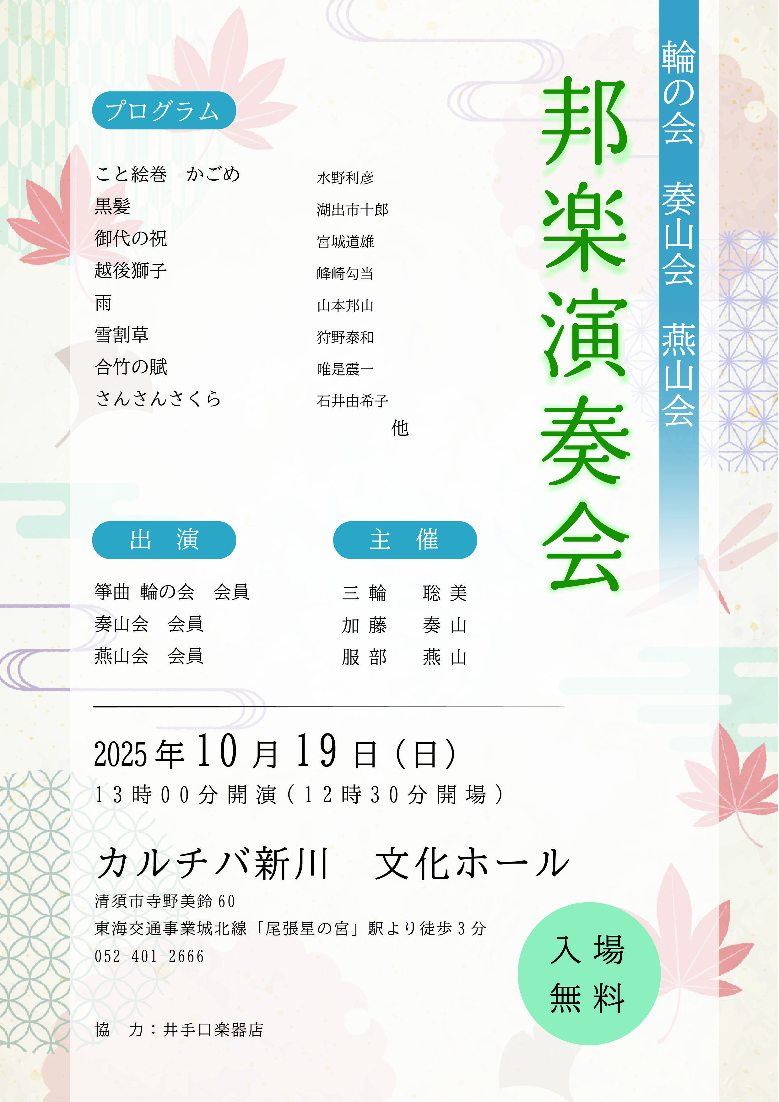 2025年10月19日(日) 13:00開演/12:30開場