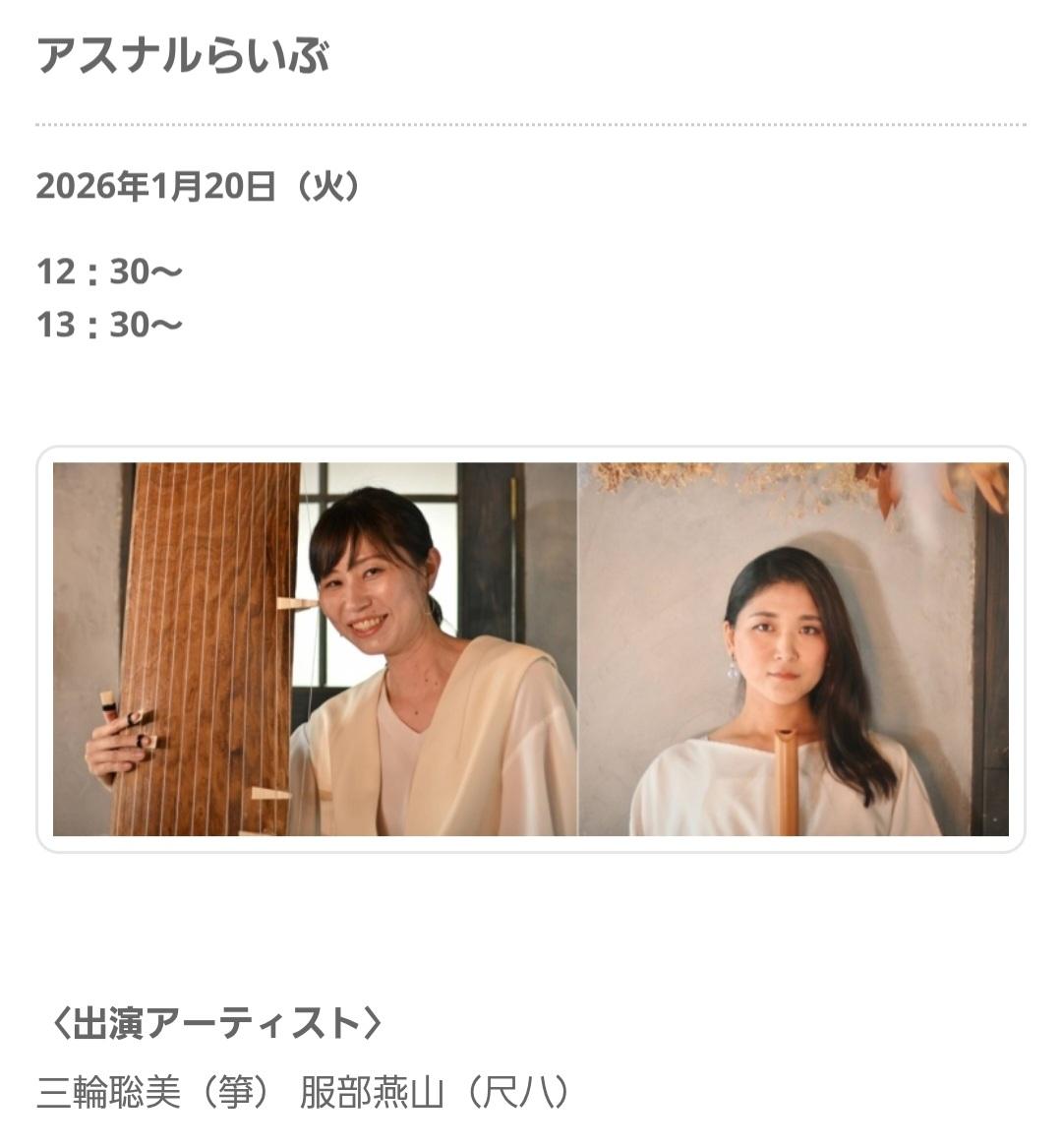 2013年にテレビ愛知主催「ニューアーティストクラシックステージ」において、尺八とのジョイントコンサートを開催。